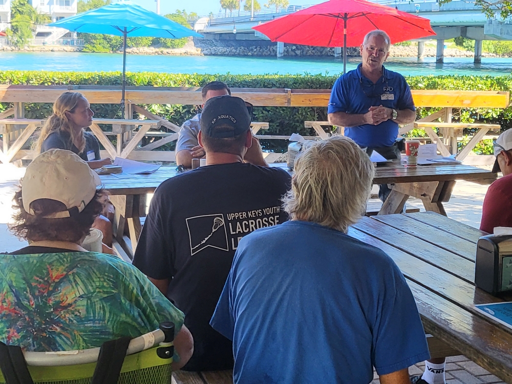 The launch took place beneath a thatched Tiki hut at Florida Keys Aquarium Encounters in Marathon, where twenty fishers gathered—the FMLA’s largest turnout in years. For many, it was their first chance to meet face-to-face with the FloridaReefFish team and talk about the challenges and opportunities facing their industry today. Over barbecue and conversation, new connections were made, and trust began to grow—the foundation on which the program will build.